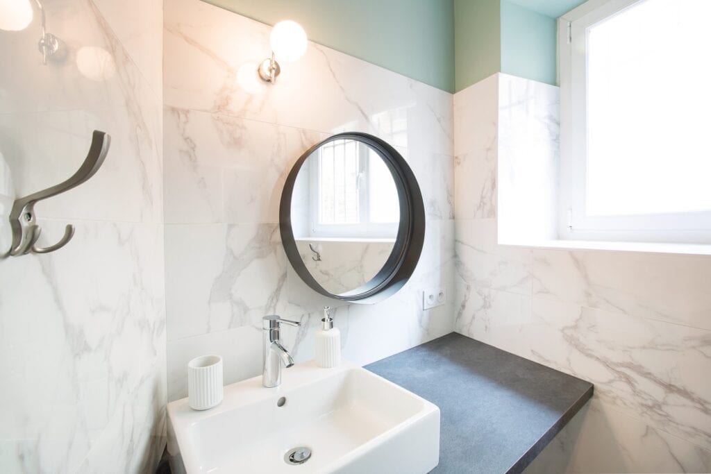 One of the easiest ways to create a modern look in your bathroom is by largely sticking to a monochromatic color scheme. This classic combo looks sleek and sophisticated, and never goes out of style.You don’t have to incorporate every shade of the monochromatic rainbow. It’s possible to focus on creating an ultra-clean white space or to experiment with various hues of gray. Just mix up the space with a few different prints and patterns to keep the room from seeming too one-note.