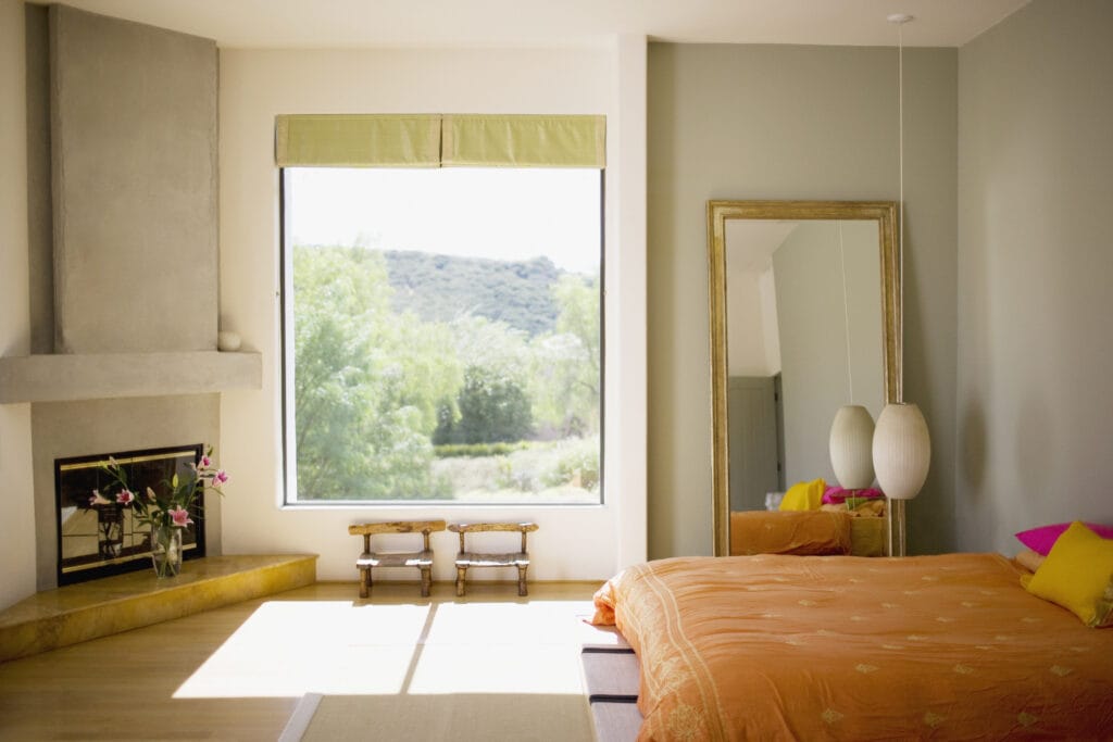 We all know that mirrors can make a room appear larger – and that’s a neat trick – but mirrors are more than just one-trick ponies. They can also be used as a design element to help complete whatever look you’re trying to achieve. A mirror can provide either contrast or balance when used correctly. It can also unify a space or serve as the focal point. However, it’s important to make sure that the scale and proportion are harmonious with the setting.