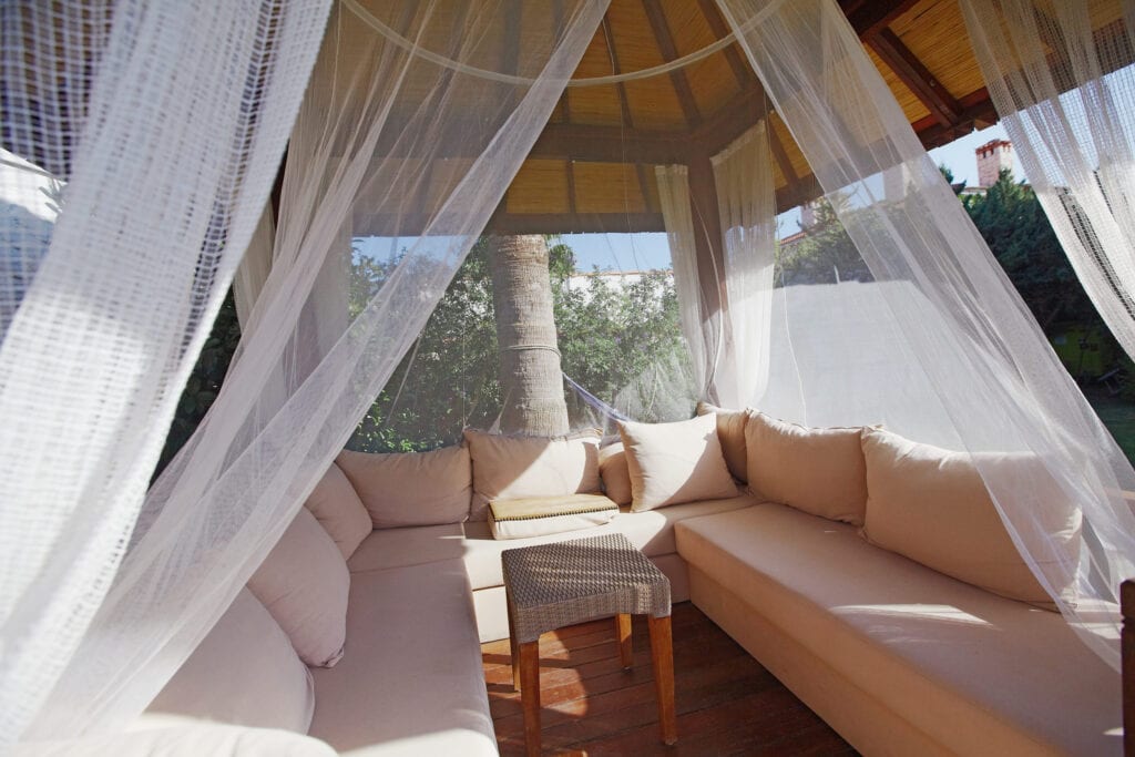 Add an extra layer of shade and privacy with outdoor curtains. Attach them to your gazebo, pergola, or cabana for a finished look.