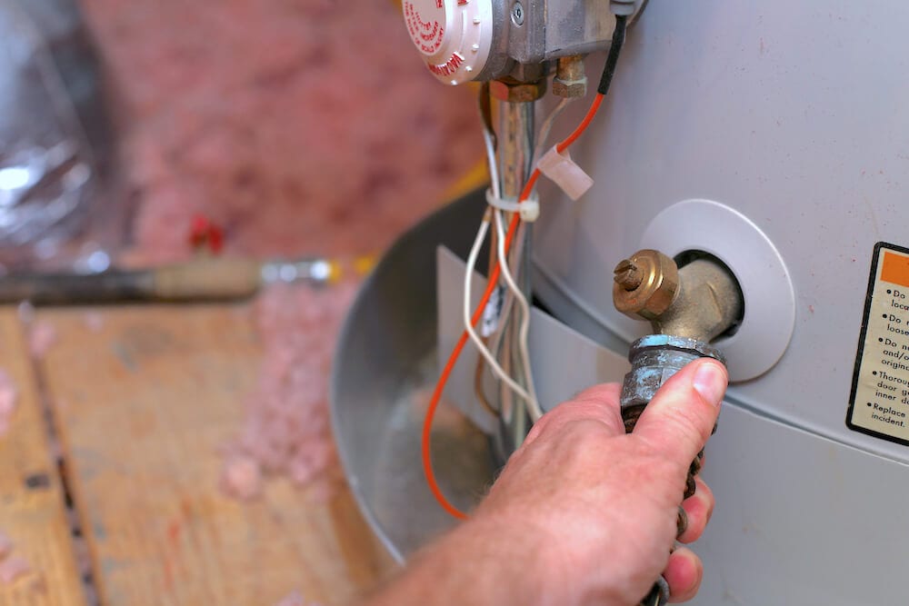 Then, turn off your water heater’s water supply by shutting off the cold water valve. It will be located at the top of or above your water heater along a pipe that supplies it with cold water. A 90-degree turn will usually shut off the water.