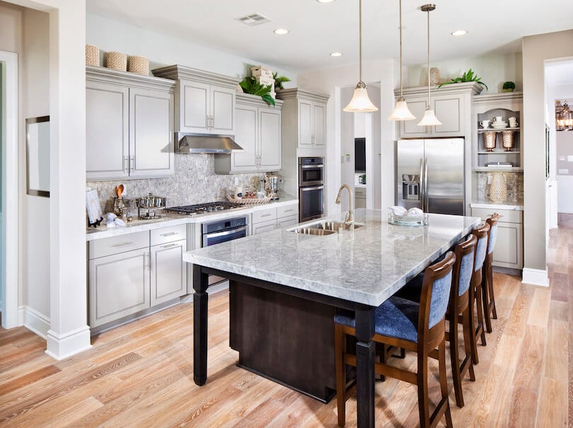 When you clean your kitchen, move from top to bottom. Wipe off your kitchen hood first, then clean your stovetop. Otherwise, everything you just wiped off can settle right where you prepare your food. The same goes for the rest of your kitchen. Start at the top, cleaning cabinets, then disinfect counters. Finish with the floor and you’ll have a truly clean kitchen instead of one in which you’ve just relocated whatever dust and food particles were accumulating.