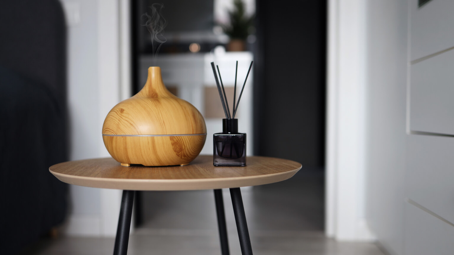 Aroma oil diffuser on table at home air freshener