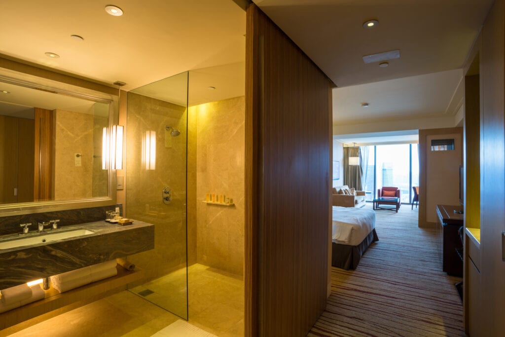 14.) Change the swing of your door: If your current door swings into your bathroom consider flipping the door around so it swings out of the bathroom. When doing this, ensure that the door is not swinging into a heavily trafficked hallway or space. If you can, consider installing a pocket door that slides into the wall, and doesn’t require a door swing. Pocket doors are also visually appealing because they “hide” inside the wall!