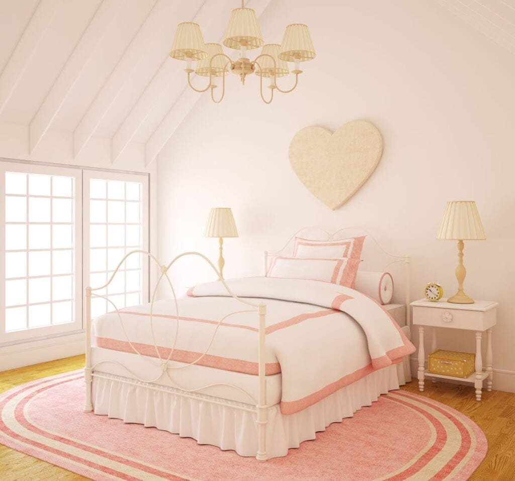 Pink girls bedroom with heart shaped decor Tr1sha / Shutterstock