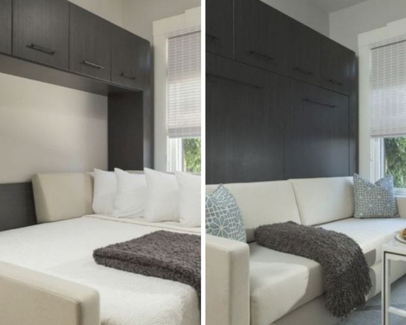 Also, you don’t have to take the sheets on and off every time you use the bed or put it away. For example, Williams says their beds have a Velcro strap system and this keeps the bedding (and the mattress) in place when it is closed. And if you don’t like vertical Murphy beds, you can get a side tilt configuration that opens horizontally.