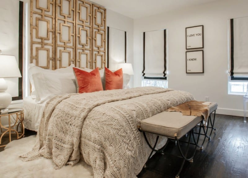 One of the freshest fall bedding ideas is the use of the cable knit texture. It gives a contemporary bedroom some whimsical and vintage personality, while keeping you warm and cozy this fall. You don’t need a lot to get the look; simply add a cable knit blanket or throw pillow to your bed.
