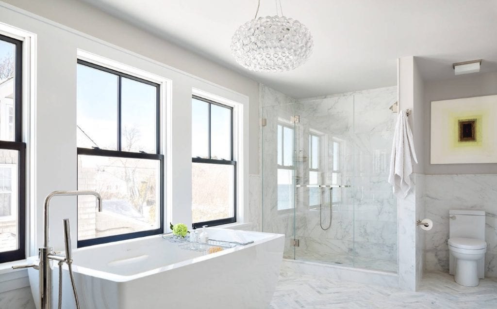 luxurious marble lined bathroom