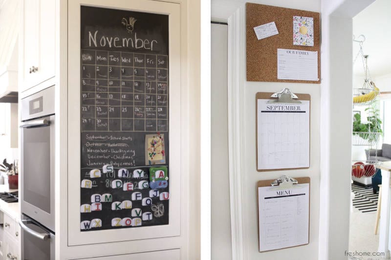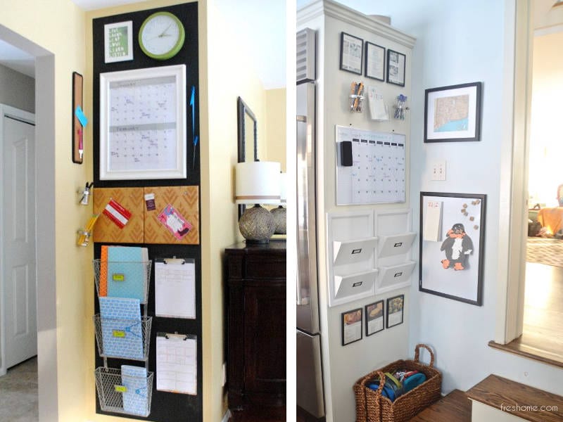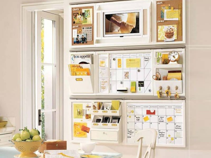Keep your family running like a well-oiled machine by organizing a command center complete with a calendar, bulletin board, chalk or dry erase board for to-do lists and a place to catch paperwork or mail.