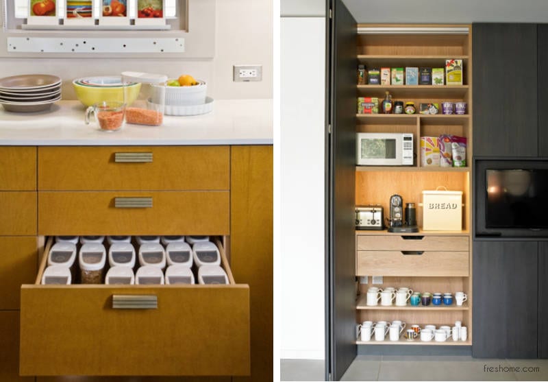 So you’ve managed to get the kids to be tidier by putting their things away somewhere they can find them again. But now they’re starving and the chaos moves to the kitchen. Why not designate a spot in the kitchen for their after-school snacks, morning breakfast and lunches?