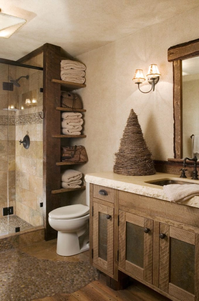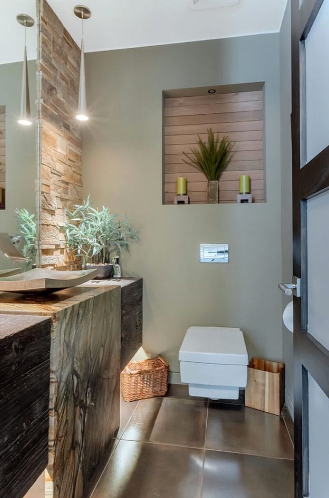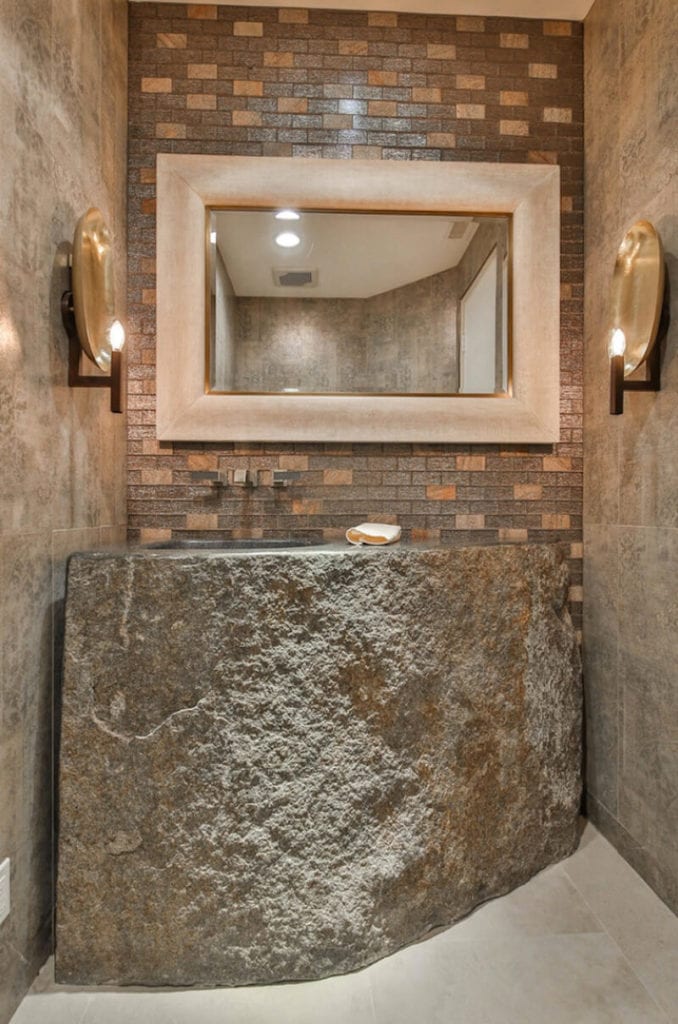 You can use natural wood on the wall, sure. But other ideas include using it in actual sink fixtures, countertop spaces and mirror frames. You can use as much natural wood as you want for a truly rustic space or keep it a little more minimal for an updated look. Take a look below to see some of the creative ways designers have used wood to get natural textures into the home.