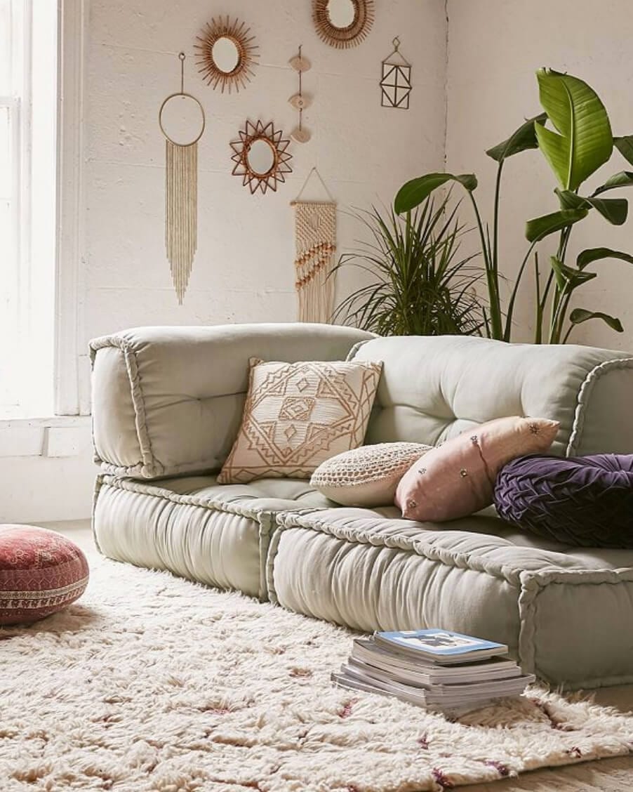Floor cushions are an essential (and super fun) element of casual summer decorating. Whether you choose colorful floor pillows or a large couch-style cushion, be sure to pair new seating with low-profile tables for entertaining and lounging.