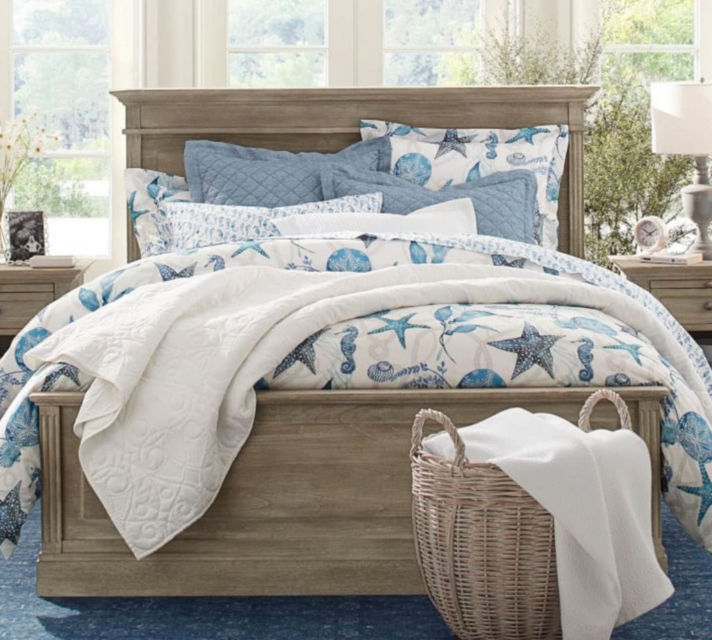 A new duvet cover can makeover your bedroom in an instant. Look for light fabrics like linen and cotton for comfortable bedding even when the weather heats up. Beach-inspired patterns and colors (like blue and aqua) are perfect for summer decorating. Even if you aren’t embracing a full coastal theme in your home, you can add touches of beach style in any room when you work within your color palette.