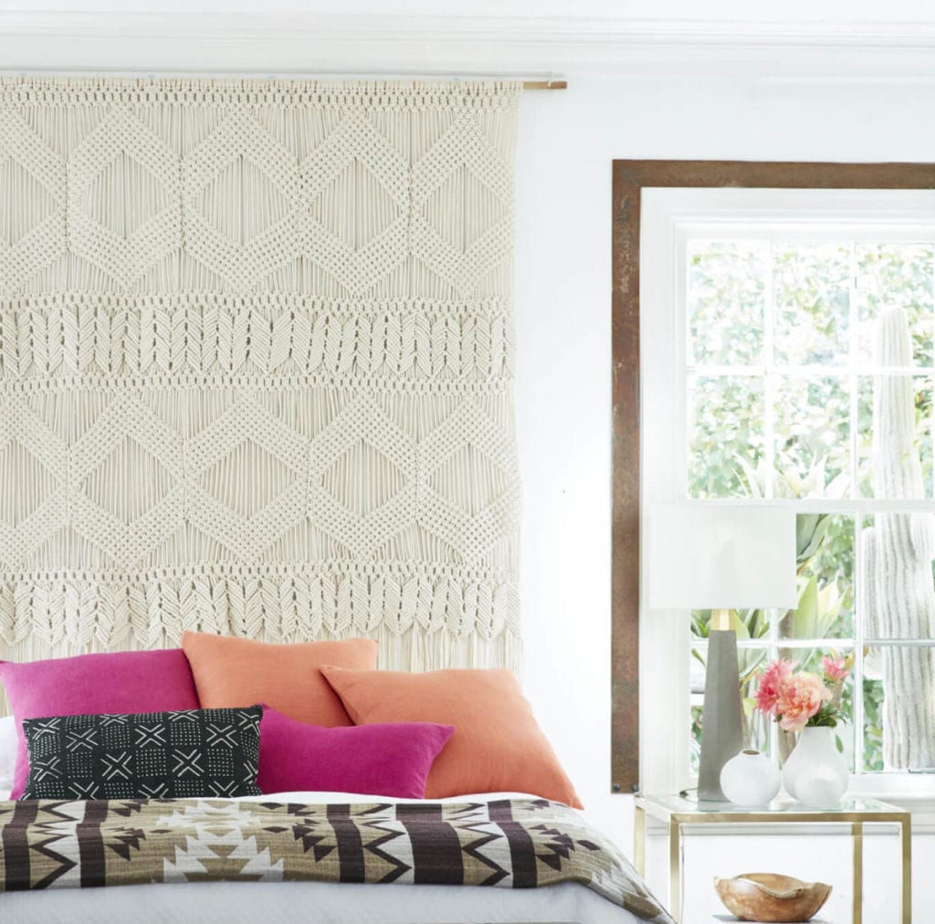 Maybe we’re just reminiscing about summer crafts, but macrame and handmade accessories feel like a perfect fit for the season. Mixing handcrafted decor in natural colors and materials with boho or contemporary furnishings creates a relaxed summer style. Add softness to your bedroom or living room by replacing framed art with macrame and woven wall hangings.