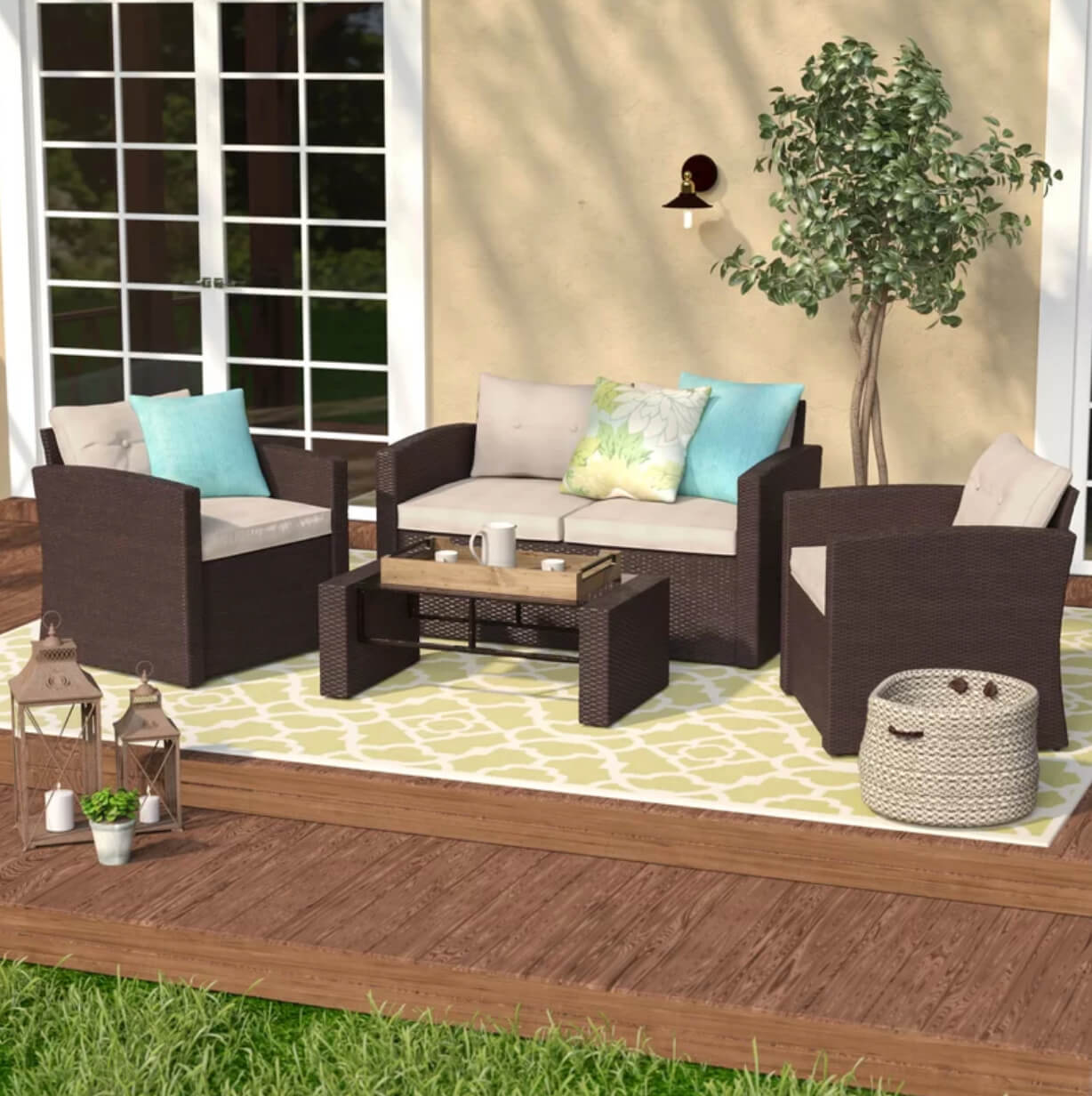 We love indoor/outdoor rugs for bringing color and pattern outside. Look for rugs with lots of summer color, as they are the best focal point for your outdoor decorating plan. Your outdoor seating and cushions may be pretty neutral, so you can be creative when choosing your rug, pillows, and accessories. An easy and fun tip for choosing the best indoor/outdoor rug is to match a few colors from your summer-blooming flowers in the rug’s pattern.