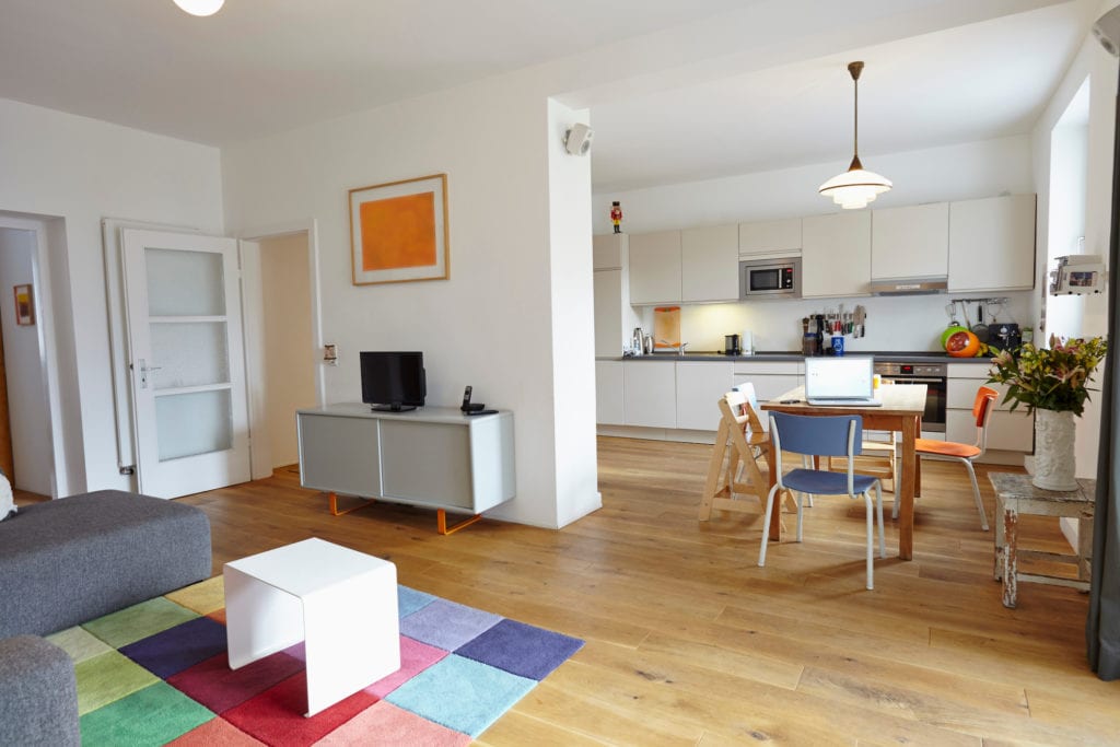 In having an area rug separate the visual plane, you can make the open floor plan seem like each area has its own distinct part of the home.