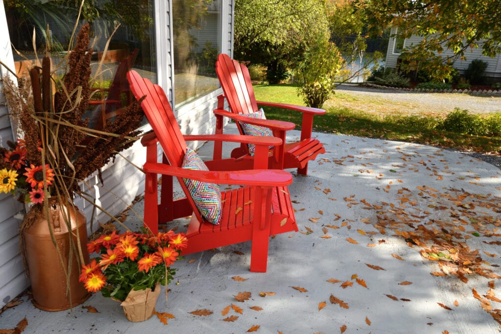 Two Red Chairs on Patio in the Autumn (New Brunswick Canada)