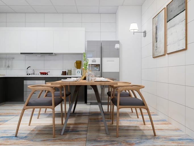 - Transitional: Creating the illusion of motion by repeating the same pattern multiple times within the same space. It’s most commonly seen in tiled floors, backsplashes, and wallpaper.