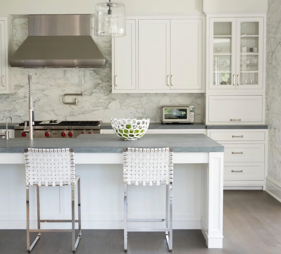 An easy way to get some instant contrast is to go for some natural materials as the kitchen backsplash. For instance, marble instantly gives contrast, since it has dark veins running through the white material. Some marble has darker veins than others, meaning you can have as much or as little contrast as you’d like with this style.
