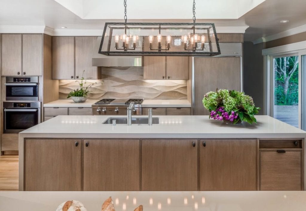 A more unconventional idea is to go for some texture in the kitchen backsplash to create contrast. The photo above shows that some wave designs added to the backsplash help create contrast as the light hits different points of the design. Added beige shading helps with that contrast for a look that is both bold and subtle.