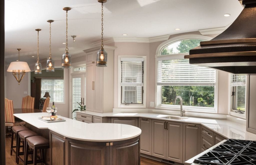 The second most trendy kitchen style is transitional. “The transitional-style kitchen presents a juxtaposition of contemporary and traditional styles. You might see a mix of sharp lines and soft and delicate curves,” H-Millard explains. “The transitional kitchen evokes both charm and edginess.”