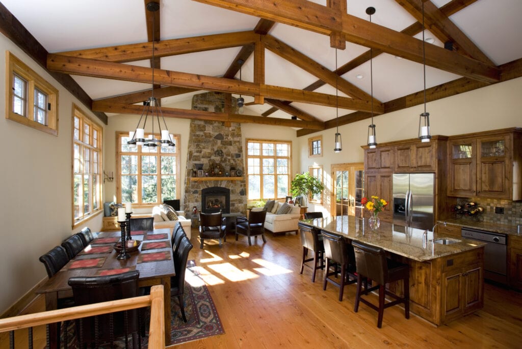 Dark wood can seem too imposing for some smaller, dimly lit kitchens, so consider adding painted or bleached white wood instead.The wooden ceiling beams in the kitchen featured below are solid wood, but are bleached with a white stain, allowing the room to seem rustic, yet large and airy, too. The cupboards are made again of solid wood, but a light-colored pine wood that is far from dark or dreary.Everything still feels rustic and countrified, yet somehow open and modern, as well. This may be a look you could love for your rustic kitchen design.