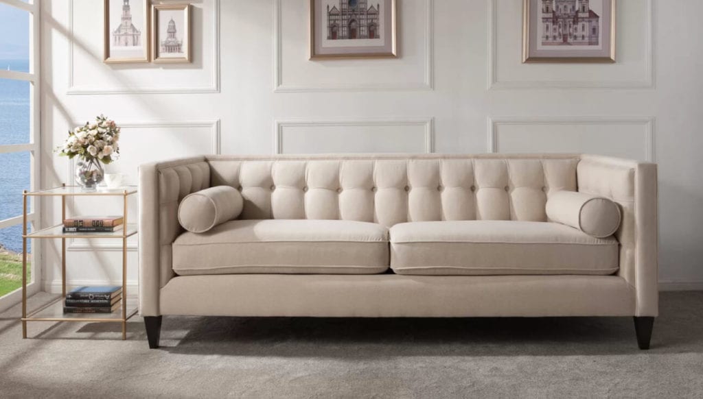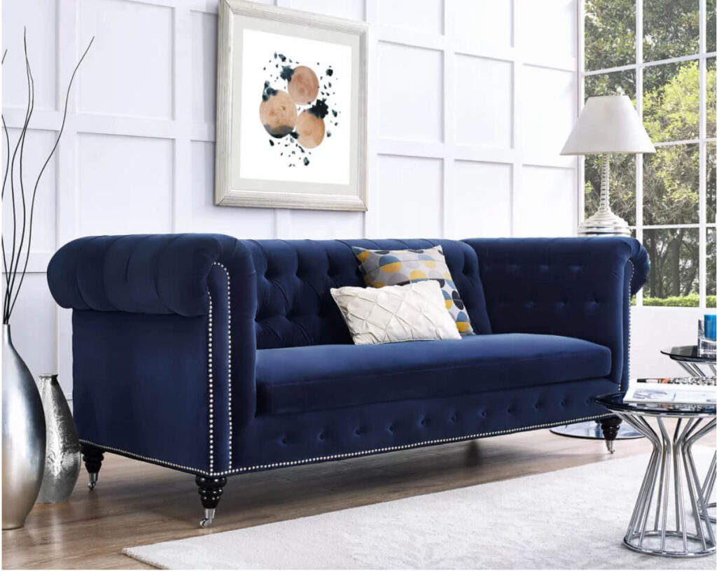 A velvet sofa in a jewel tone doesn’t have to be formal (unless you want it to be). The styling and shape of your sofa is the determining factor in how it will fit with your decorating style. Clean lines in any fabric are perfect for mid-century modern or contemporary style, while soft sofas that sink in when you sit are a natural choice for boho or global-chic rooms. More traditional styles like the classic Chesterfield sofa can work in a variety of decorating styles, not just formal spaces.
