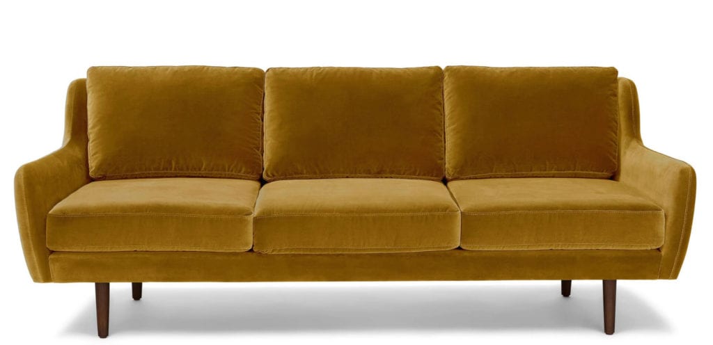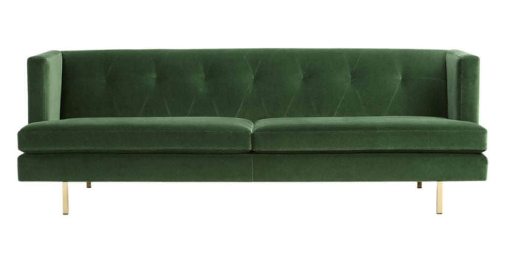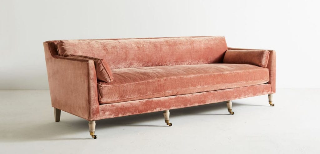 Your velvet sofa can be a statement piece that you decorate around, rather than a predictable staple in your living room. This is your chance to lose the beige couch and dated accent pillows.  The new velvet sofas are often rich with jewel tones like royal blue and emerald green, but pastel colors are popping up in our living rooms, too. Here are some of our favorite velvet sofas in luscious colors: