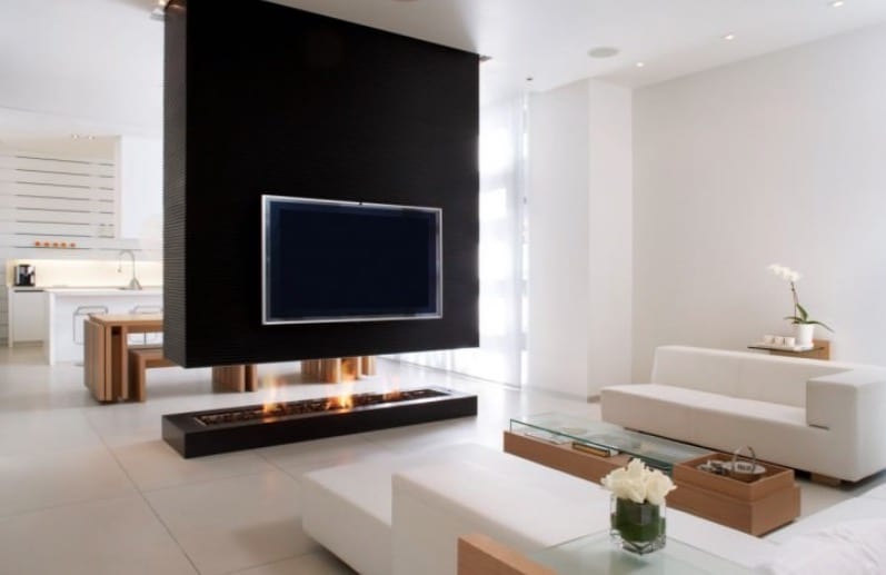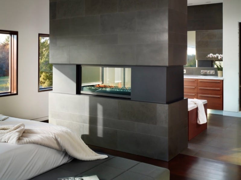 These contemporary fireplaces are sleek and sexy. The latest trends involve minimalistic, clean lines, timeless materials and the utmost in beauty and efficiency. To truly enjoy such a beautiful design element in a room, make your fireplace the centerpiece. Ways to achieve this include: