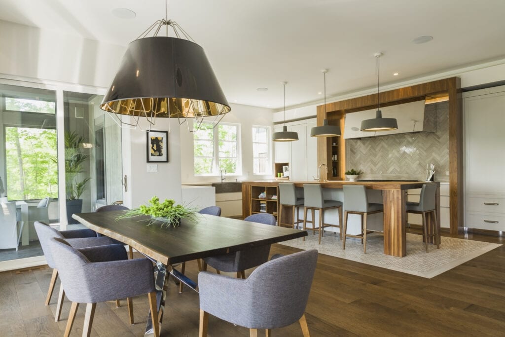 One of the easiest ways to create multifunctional rooms is to put together a kitchen with a dining room area. As open-floor plans become more popular, people aren’t wanting a dining room separated from the main space. They want to be able to cook and socialize — at the same time. The spaces shown below make great use of combining the kitchen space and eating area into one room. It’s an especially good idea for small spaces or smaller home floorplans since it cuts out the need for another wall. It also means no one is cut off from the crowd while cooking.