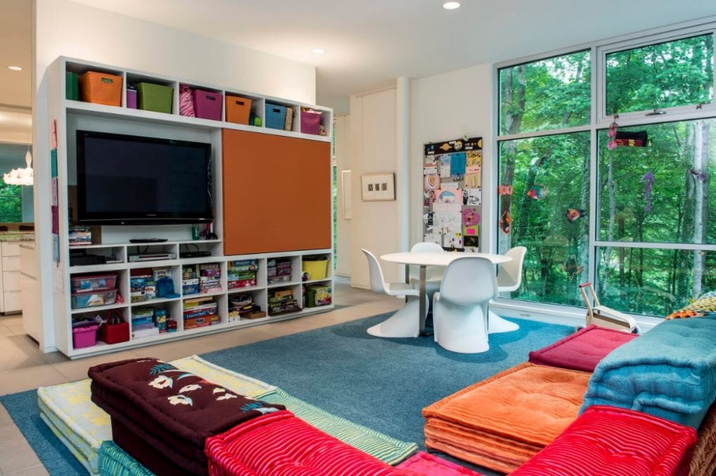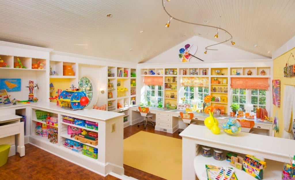 If there’s one universal truth, it’s that kids come with lots of stuff. The best playrooms are those with plenty of storage available to keep all of it out of the way while making it seem part of the design.