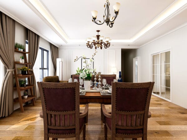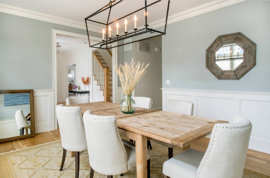 Additionally, be sure to layer your lighting so that the only source of light isn’t that single fixture. Think about adding in some ambient light in the form of recessed lighting, plus a few accent fixtures to brighten up any dark corners. Since dining rooms are all about ambiance, you may also want to look into lighting that’s able to be put on a dimmer.
