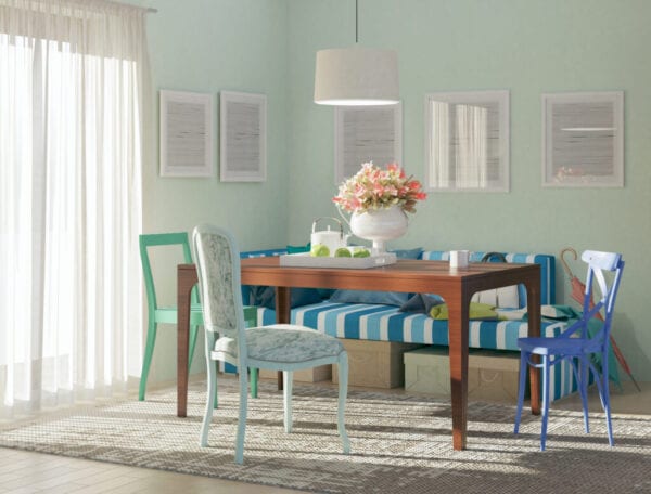 Coordinating every element in your dining room can get costly. Don’t be afraid to use eclectic design to mix and match various styles, manufactures—even time periods. Doing allows for more freedom to put a design together that works in your budget.