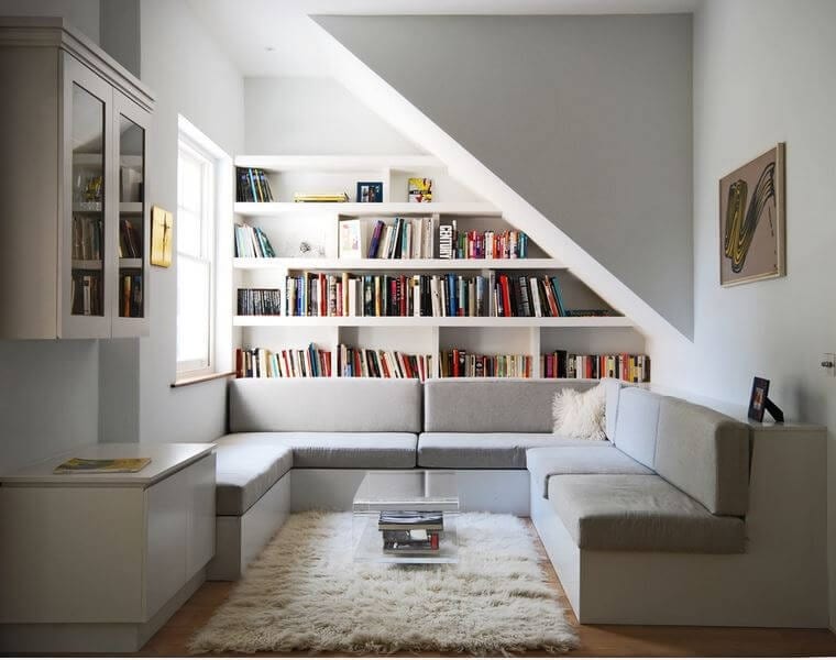 Consider carving out some room in your home to create a small library. This is an opportunity to make a really cozy reading space for yourself. We’re talking faux fur rugs and pillows, plush chairs, fuzzy blankets, and more! Ideally this spot is somewhere in your home that gets some good light from outside, but if you don’t have natural light, look for lighting that will give you enough to read by without being too harsh on your eyes. You also want plenty of storage shelves, of course, because your books have to go somewhere.