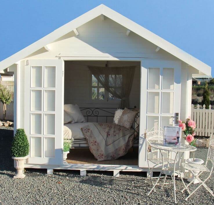 You can design a she-shed that doubles as a guest room while you’re not using it as your getaway. Think of it almost like a guest house, on a much smaller scale. Because it’s your she-shed, you should decorate it with your happiness in mind, with slight consideration for how it will double as a space to sleep a visitor. This means that the she-shed will need to be big enough to fit a sleeping arrangement plus room to maneuver. You can dress up the she-shed interiors however you like, maybe with some paint or wallpaper, some comfy seating, and decor.