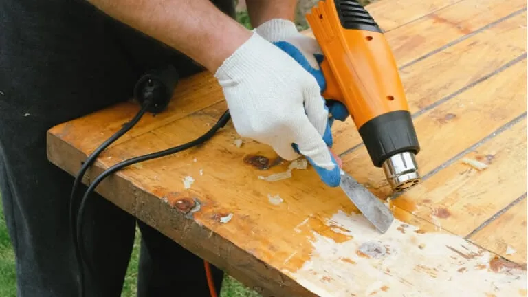 Heat guns makes paint bubble so you can scrape it off, but they can also damage wood or—at worst—cause it to catch fire. These work well for large surfaces and are easy to learn how to use, but they do come with risks and require a little practice before you start.