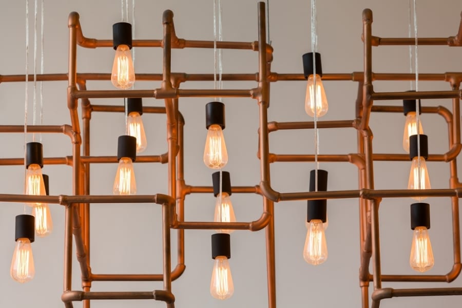 An intricate pipe light fixture. Image: WichitS/Shutterstock