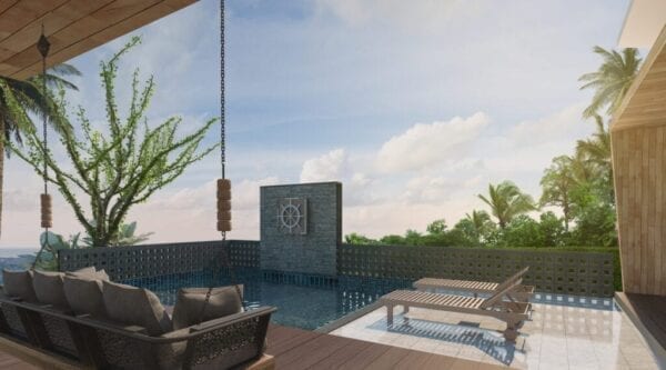 To achieve a sense of calm and tranquility, the design approach focused on the use of organic materials, including timber and stone. Large sliding glass doors  blur the line between indoor and outdoor living. Cottons, linens, raw timber, stone and marble against a backdrop of fresh white walls give the internal spaces natural harmony.