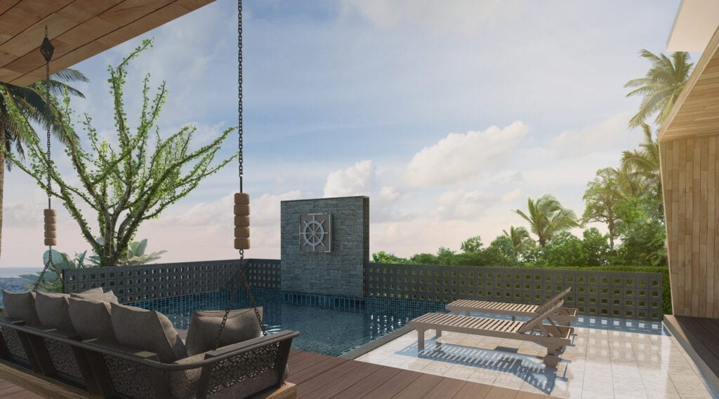 “From the bones of the existing villa, the clients asked us to create a contemporary Ibiza-style home that would allow for intimate, casual family living, as well as extensive entertaining of large groups of friends,” said Mark Rielly, a partner at ARRCC. “The complete renovation included additional accommodation in the form of guest rooms.”