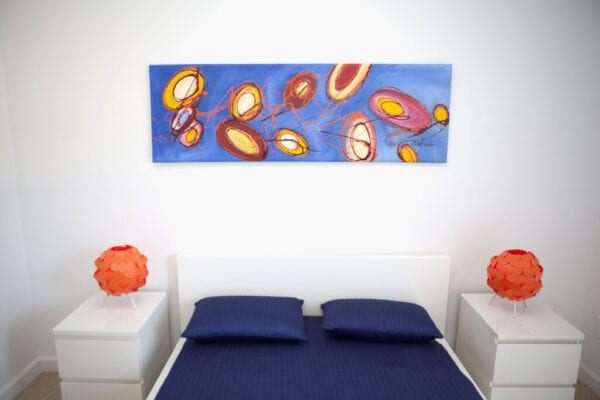 Large wall art doesn’t have to be one painting in one frame, either. The photo above shows how one piece can be spread across a few different canvases. This is a good style if you are trying to cover a truly large wall. One piece can occupy several canvases in multiple frames to take on a whole different design.