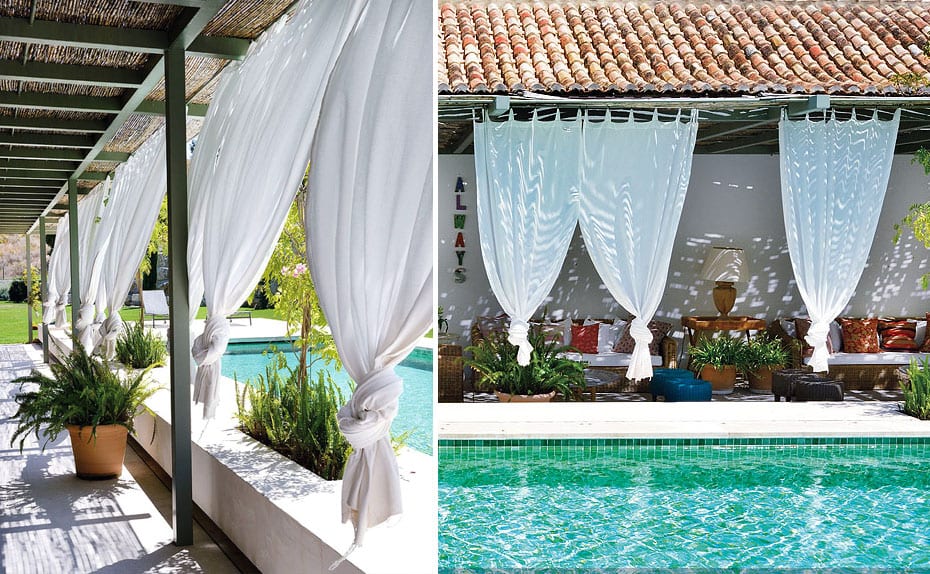Create the feeling of another room simply by adding curtains to fully or partially enclose any outdoor space and make it feel more intimate. Attach hooks to the underside of an awning, pergola or porch and hang a curtain rod between them.