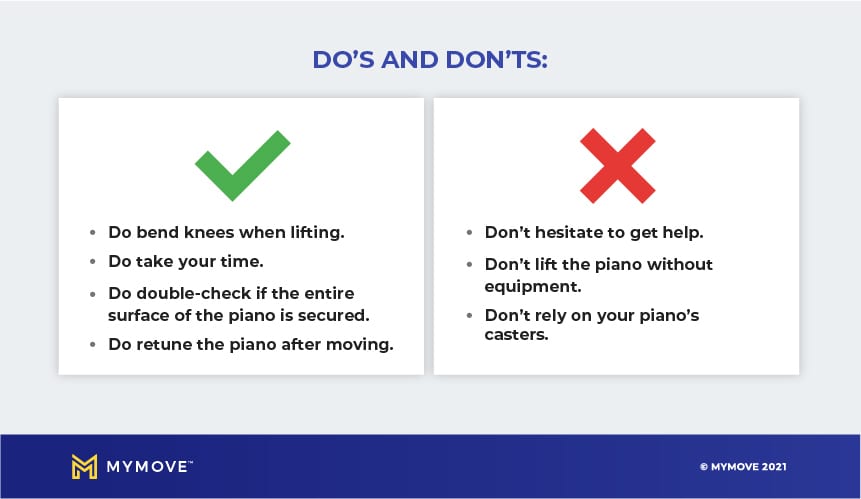Now you know the steps to take to properly and safely move a piano yourself. Here are a few mistakes to avoid:
